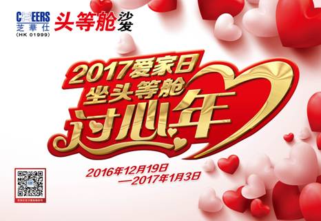 如今,芝华仕头等舱沙发再次发起2017爱家心诺言:坐头等舱,过心年。将用心爱家的理念与实际的爱家行动结合在一起,呼吁社会大众行动起来,用心爱家,带给家人最好的家居体验,过一个充满“心意“的新年。