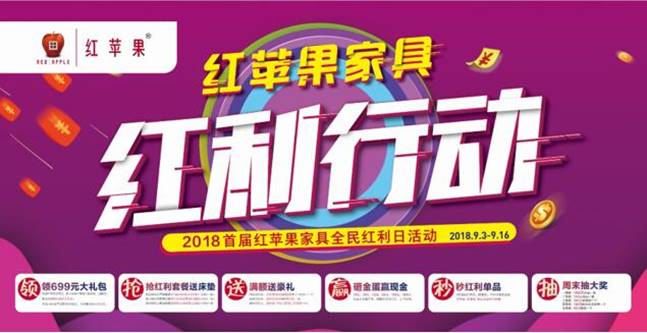 9.3日以来,红苹果大型促销活动“红利行动”,在全国数百城市盛大启动后深受好评,各地呈疯抢之势!把明星巨额代言费、各种天价广告费等费用分摊到每一款产品上,以“红利行动”6重好礼的形式发放给消费者,进而打造出了23800元就可配齐全屋家具的超高性价比套餐!据了解37年来红苹果老客户转介绍率高达7成,红苹果不请代言人,红苹果用户却成了红苹果品牌的 “超级代言人”!