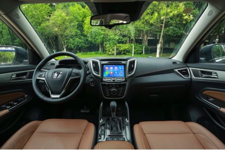 此次上市的CS75尚酷版1.5T/6AT在内饰上的提升可谓一大亮点。在外观上,其采用360°豪华机舱式设计,并在原有典雅黑色基础上,新增一款雅致棕色内饰,让消费者拥有更多个性化选择;在质感上,其全系采用软性材质包裹,从门板、A柱到仪表板,触感细腻柔软,拉丝中控面板搭配8寸大屏、中控箱扶手以泡棉加厚、水转印换挡杆皮套四周及门板按键区四周的精致、顶灯及后阅读灯均以镀铬亮条装点,豪华的内饰品质令车内的档次感瞬间提升。