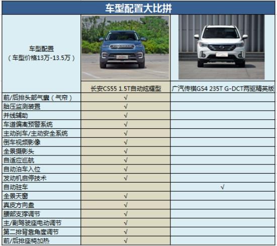 智能配置方面,不比不知道,一比吓一跳。价格相仿的长安CS55与GS4,相关配置比拼如下: