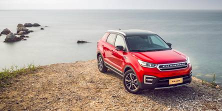 长安CS55由长安欧洲设计团队倾心打造,以炫动红和繁星蓝为主车身颜色,据说色彩的灵感来自于火山迸发的黑曜石的闪亮,因而其在色彩表现上格外震撼,有一种摄人心脾的美感。它前脸的六边形格栅很有特色,镀铬的饰边加上长安的字母样式表现出力量感,流畅的车身线条,使得整车气质硬朗大气。