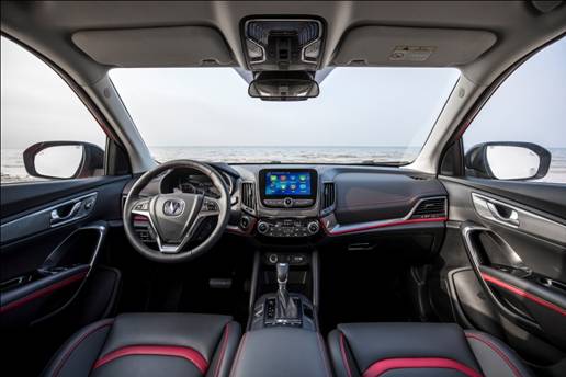 长安CS55内饰风格简约,采用极具视觉冲击力的红黑撞色,与主打车色的时尚运动风格一致;X型式中控设计采用了悬浮式设计,配合多功能真皮方向盘的前卫设计,更添科技感。在内饰用料上,长安CS55采用软质皮料,让舒适与品质并重。