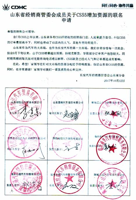 日前,长安汽车山东省经销商联名“造反”的事在朋友圈传的沸沸扬扬。一张销售顾问和车主对话的截图在疯转,各经销商也纷纷转发吐槽,最后迫于压力还联合各区域经销商门店签字署名集体上书,甩出一张联名上书厂家的文件,用舆论施压,倒逼厂商给资源。