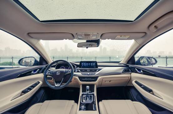 体现在外在颜值主要有2点。第一是全新的前脸,长安突破了传统的六宫格式前脸布局,将前脸看作一个整体,以写意的笔触,打通上下格栅,并且和周围灯具融汇贯通,延伸出立体感的同时带来极富张力的视觉冲击,勾勒出前脸饱满的情绪,极具视觉变化。