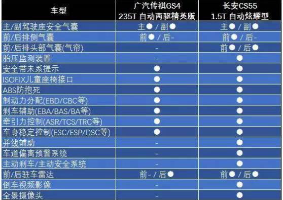 可以看到,CS55在主动被动安全方面远远超过GS4的配置,前后6个安全气囊在关键时刻能够挺身而出全面守护;同时LCDA智能并线辅助系统、PAB车道偏离预警系统、主动刹车/主动安全系统、倒车视频影像和全景摄像头都是CS55在进一步全面保障驾乘人安全上所做出的不懈努力。