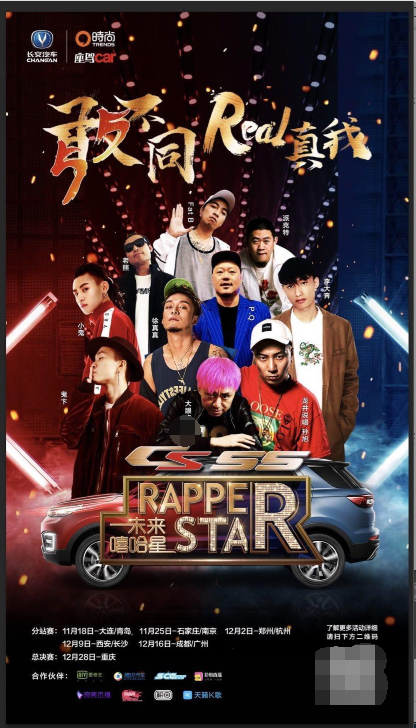 “未来嘻哈星”十城的分站比拼,目前已经走完了8座城市,下周六将在最后两站广州和成都举行,如果你认为自己敢说敢唱,还等什么,赶快报名参与吧。你来或者不来,“未来嘻哈星”的舞台都在这里,与其坐在台下羡慕别人,不如勇敢站到舞台上,展现出你的嘻哈精神,说不定还能把长安CS55开回家!