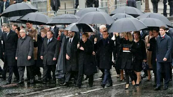 美国、俄罗斯、德国、英国等60多个国家领导人在一战停战协定签署地法国出席了纪念仪式,通过悼念一战逝者来传递和平的信念。