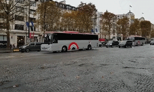 当天上午11时,参加纪念活动的各国领导人们乘坐宇通大巴车从爱丽舍宫出发,抵达香榭丽舍大街后步行前往位于凯旋门的仪式场地。