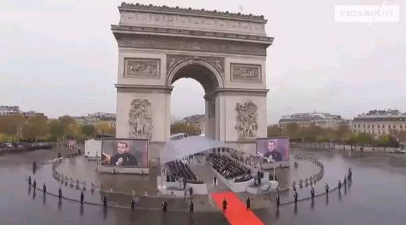 在凯旋门下无名烈士墓前的长明火前,与会者们共同聆听了法国总统马克龙的演讲,以及欧盟青年交响乐团和马友友分别演奏的古典音乐,悲伤中透露着对和平信仰的坚定。