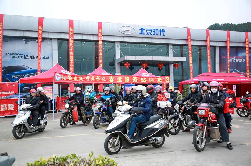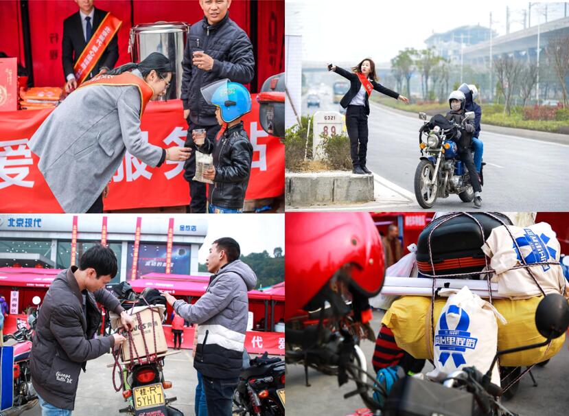 经过短短十天时间的筹备,就有14000名爱心车主报名参与了公益活动,而北京现代则在数十万铁骑大军返乡的重点路段(G321国道广东广州-广西梧州),沿途设立了爱心服务站,为铁骑大军提供暖心暖胃的热水、热粥、暖手炉和医疗箱等爱心援助,还为他们送上雨衣、春联和帆布袋等爱心里程包,给风尘仆仆的归家旅程带来温暖。
