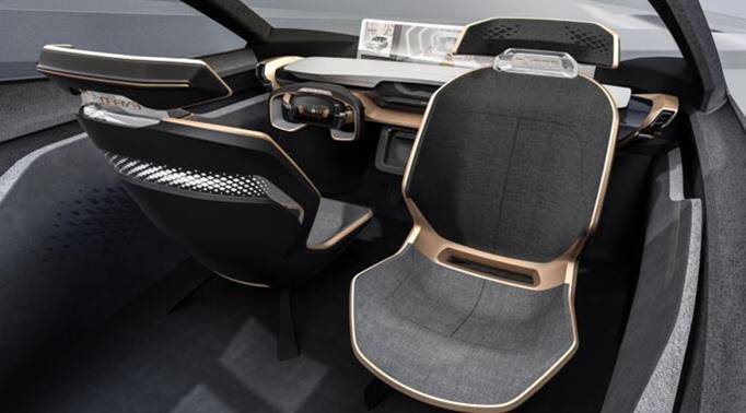 内饰从大自然汲取原始元素,融合最新科技,通过高级材质的应用进一步为用户提供极致体验。不对称的设计、高级材质和高科技达成了平衡,构建一个温暖、舒适的空间,将乘客包围其中。“茧式”理念为用户提供一个充满安全感的空间,同时避免繁杂的屏幕装置和车载娱乐系统带来的繁冗信息,置身其中可以轻松随意的休息、交流。灵活的内饰布局为人与人之间的交流,以及人与外界的远程连接提供各种可能。