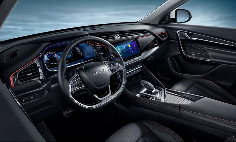 风暴数字格栅由中心向两侧扩散,搭配上贯穿左右的“风舞之魂光学大灯”,整体视觉效果极具冲击力。与此同时,前唇下部的红色装饰条,以及两侧造型激进的进气口,也让车头的视觉效果得到了进一步拉低,在提升运动气质的同时,看起来也更为时尚。