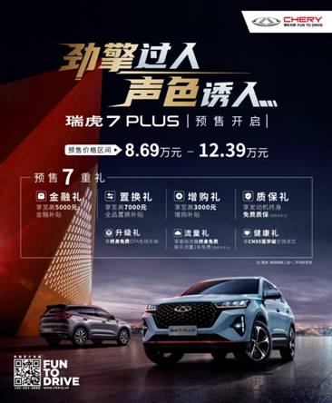 瑞虎7 PLUS自开启预售以来,以8.69万-12.39万元劲爆的预售价格以及诚意十足的“预售7重礼”,引发了年轻消费者的关注和追捧。据悉,瑞虎7 PLUS即将于9月27日正式上市,届时又将掀起新一轮购车热潮。