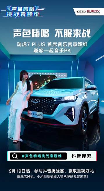 瑞虎7 PLUS还未上市便走红,除了过硬的产品实力外还离不开年轻化创新营销。为助力瑞虎7 PLUS的上市,奇瑞汽车携手灵魂歌手袁娅维在抖音开启了#声色嗨唱挑战袁娅维#挑战赛,并同步上线了袁娅维特意为瑞虎7 PLUS打造的《爱情慢慢来》抖音神曲及MV,引发全网传唱热潮。在竞争激烈的10万级SUV市场,瑞虎7 PLUS持续刷屏瞬间拉满消费者期待。