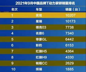 注:数据来源于乘联会9月份销量报告