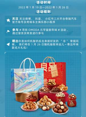 自从科技圈带火了“元宇宙”概念,不少行业为了紧贴新世代年轻人的爱好变化也纷纷加入其中,奇瑞汽车可以算是传统汽车制造业的代表。这其实源于奇瑞汽车的OMODA 5在去年广州车展上“聘请”了虚拟偶像阿喜作为代言人,随后又围绕阿喜持续打造元宇宙社区、元宇宙共创等花样玩法,最近又联合良品铺子推出了寻找OMODA元宇宙新年味活动,通过在抖音、小红书、微博三大年轻人聚集地晒出非常规的问候就能有机会赢得联名礼包。