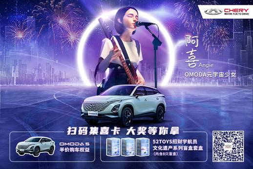 奇瑞汽车#新年就要OMODA#集喜卡活动正在火热进行中,奇粉们通过奇瑞汽车微博、微信等官方渠道即可参与,更有机会获得52TOYS 招财宇航员文化遗产系列盲盒套盒(内含8只盲盒)或者OMODA 5半价购车权益等大奖。还在等什么?快来和虚拟偶像阿喜一起,与OMODA元宇宙打个招“虎”吧!