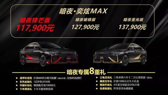 2月20日的“猎弯体验营”,暗夜·奕炫MAX锋芒版正式上市。新车主打全新黑红配色,以117900元的指导价进一步拉低了车系价格门槛,同时提供了包括战甲补给包、东风金融礼、升舱补贴礼、十年质保礼、三电无忧礼、暗夜交车礼、智能升级礼和免费救援礼在内的“暗夜专属8重礼”,性价比再加码。