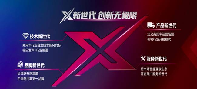 欧马可X最大的亮点即是其X的命名。提及X,想必大家对于福田汽车的X新世代肯定不会陌生。在2021年福田汽车全球合作伙伴大会中,福田汽车提出了“冲刺千万辆,迈向X新世代”的口号。并针对“X”给予解释,“X”是一种变革,代表着福田汽车永无止境的探索以及无限可能的未来。
