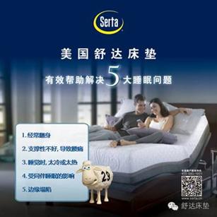 根据国际睡眠基金会(简称:NSF)调查发现,影响人类睡眠的主要是五大问题:a.辗转反侧,睡眠深度不够;b.支撑力不足导致腰酸背痛;c.床垫过冷或过热;d.床伴干扰;e.床垫下陷。而舒达3大专利(舒达妙而扣连续弹簧系统专利技术、舒达舒柔绗缝层专利技术和舒达边缘加固系统专利技术),便可以有针对性地有效帮助解决这五大睡眠问题。凝聚3大专利技术的Perfect Sleeper系列床垫,也成为国际睡眠基金会唯一官方认定床垫。