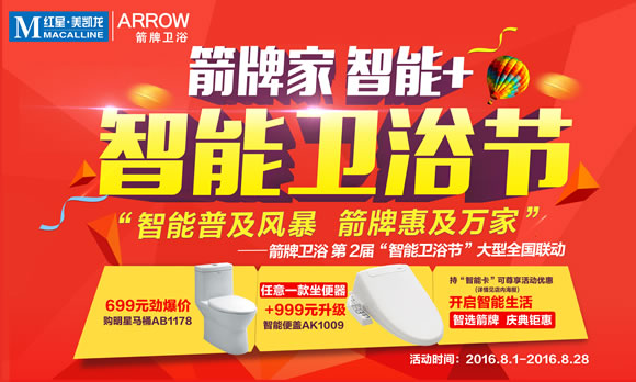 自2015年箭牌卫浴联合红星美凯龙成功举办第一届智能卫浴节后,通过智能普及行动,将智能产品带给了更多用户。2016年再次联合红星美凯龙,箭牌全国门店+全国红星美凯龙箭牌门店同时启动,掀起一场超大规模的智能卫浴消费风暴。