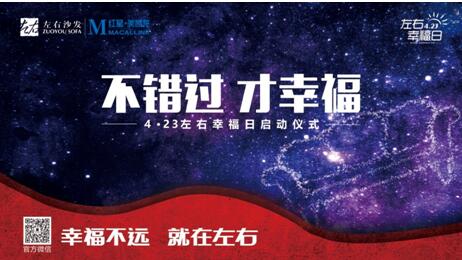 由此,左右沙发一步步贴上了“幸福标签”,并得到越来越多目标消费人群的认同。为了进一步深化“幸福理念”,左右沙发联合家居流通业巨头红星美凯龙设立一个家具业自己的“幸福日”,决议将每年的4月23日定为“左右幸福日”,今年的主题是“不错过 才幸福”。活动旨在提升左右沙发和红星美凯龙双方的品牌知名度,同时联合和借助全国的营销资源,拉动全国终端门店的销售增长。