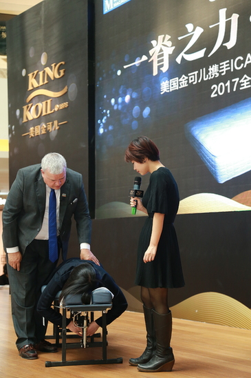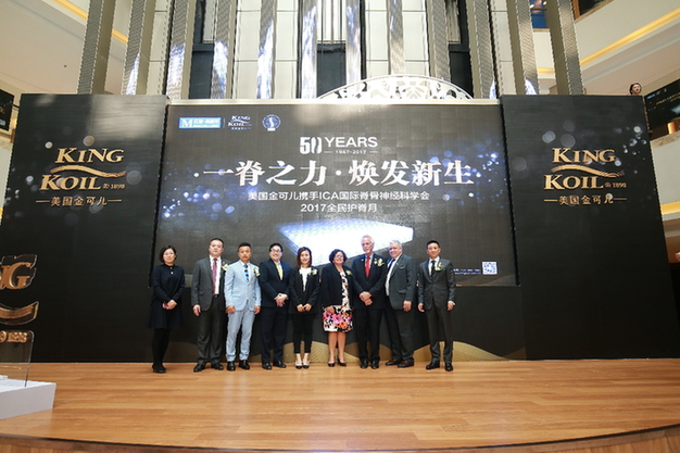 由KINGKOIL美国金可儿携手ICA(国际脊骨神经科学会)共同主办的“一脊之力,焕发新生”2017全民护脊月启动仪式在上海红星美凯龙真北店举行。红星美凯龙控股公司战略投资部总裁车一鸣、红星美凯龙副总裁卢庆文、金可儿全球总裁Owen Shoemaker先生、金可儿全球国际事业部副总裁 Maria Balistreli女士、金可儿中国执行董事王珏先生、金可儿中国副总裁邵堰南先生、以及以George B. Curry为代表的ICA脊骨专家团等重磅嘉宾出席了启动仪式。