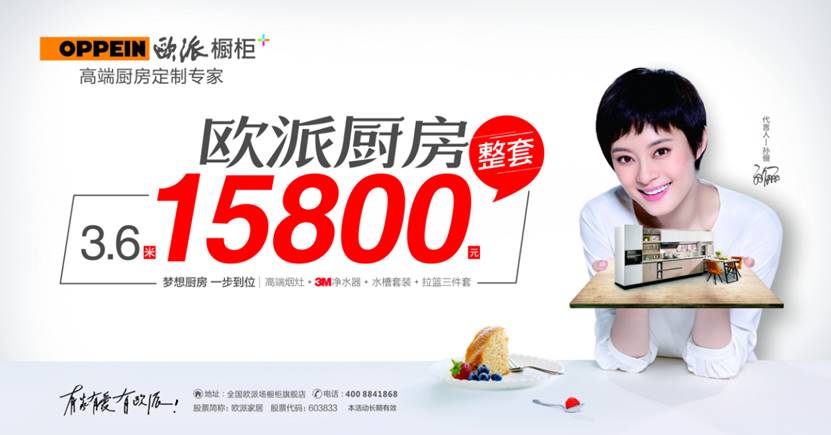 本次活动更邀请200名客户亲临北京央视中秋晚会,览清朝帝王行宫颐和园,品北京皇家博物馆菜,游北京老街南锣鼓,带领他们开启三天两夜的北京美食探寻之游,给他们一个不一样的中秋佳节。更为助力的是,此次活动线下全国机场高铁统一换画,欧派橱柜联合红星美凯龙开展 “超级品牌日”营销活动,120场红星卖场独立上画,全国2000多家欧派橱柜店面,面向全国消费者推出9999、15800、19800梦想厨房一步到位超值套餐及众多优惠活动。