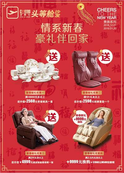 除此之外还有多项优惠活动也会同步进行,芝华仕的爱心甄选活动将不断延伸,在号召消费者“用心爱”的同时,为家人带去更好的家居产品,让家人坐好一点,坐头等舱过新年。